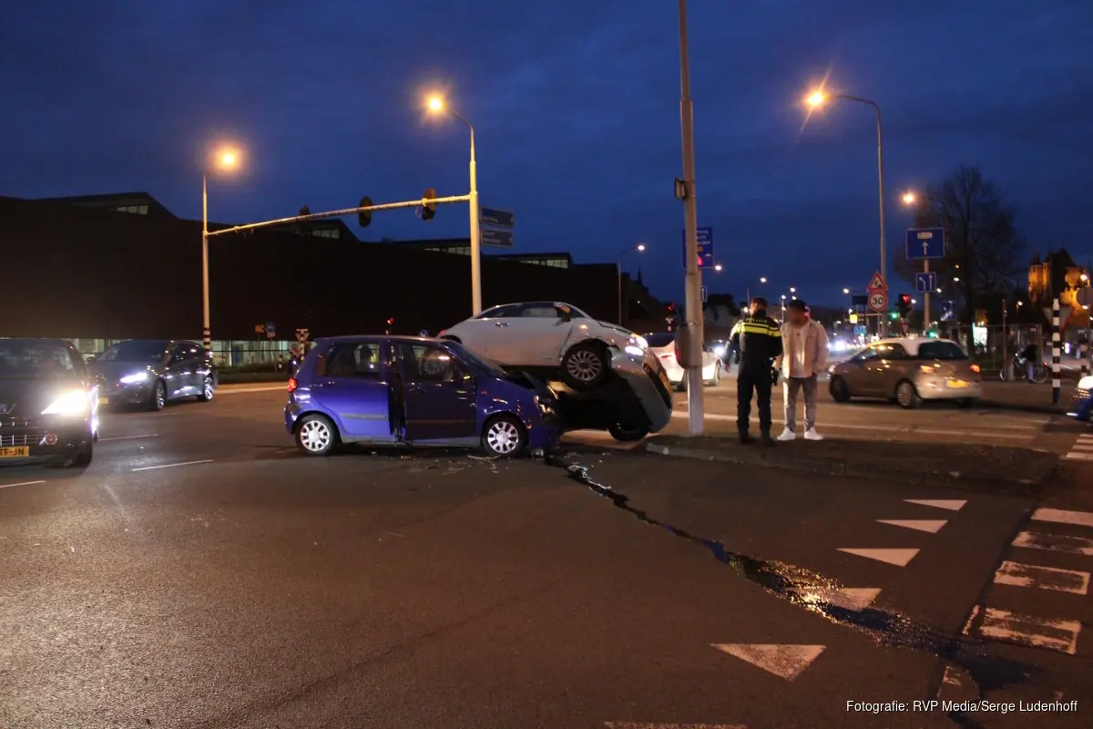 Twee personenauto's kwamen daar door een voorrangsfout met elkaar in botsing op een kruispunt. Een van de voertuigen kwam daarbij tot stilstand bovenop de andere auto.