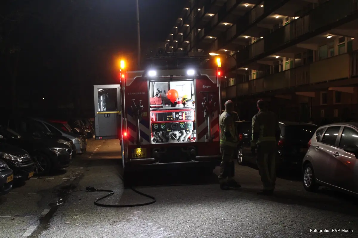 Bij aankomst van de brandweer stond de personenauto volledig in lichterlaaie. De brandweer wist ternauwernood overslag naar andere voertuigen te voorkomen. Ondanks dat de brandweer snel ter plaatse was kan de auto als total loss worden beschouwd, ook raakte een andere personenauto welke er naast stond geparkeerd beschadigd door de brand.