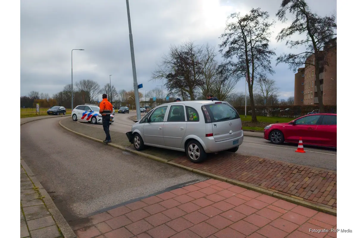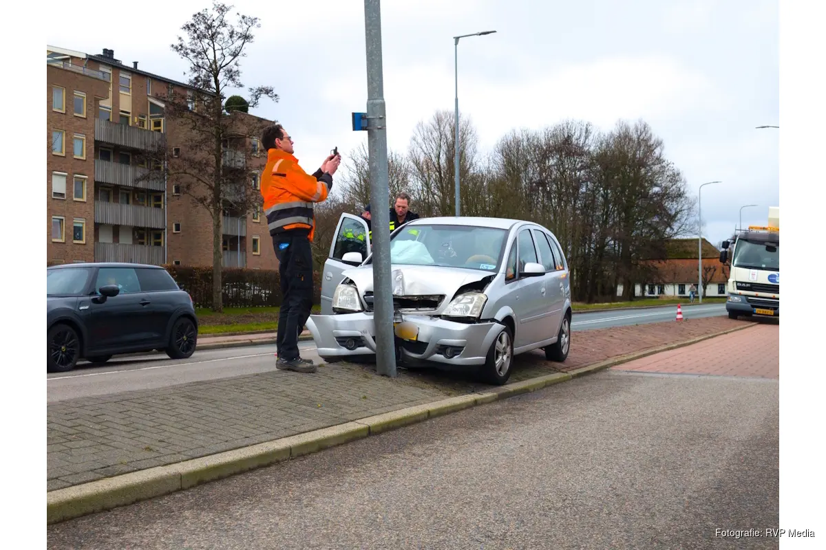 Een automobilist verloor door nog onbekende oorzaak de controle over het stuur en botste tegen een lantaarnpaal langs de weg.