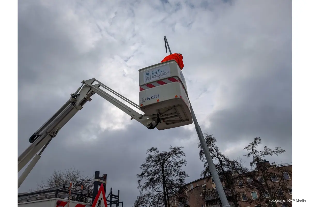 De gemeente is aanwezig om de schade aan de lantaarnpaal te herstellen. Een bergingsbedrijf zal het voertuig afslepen.