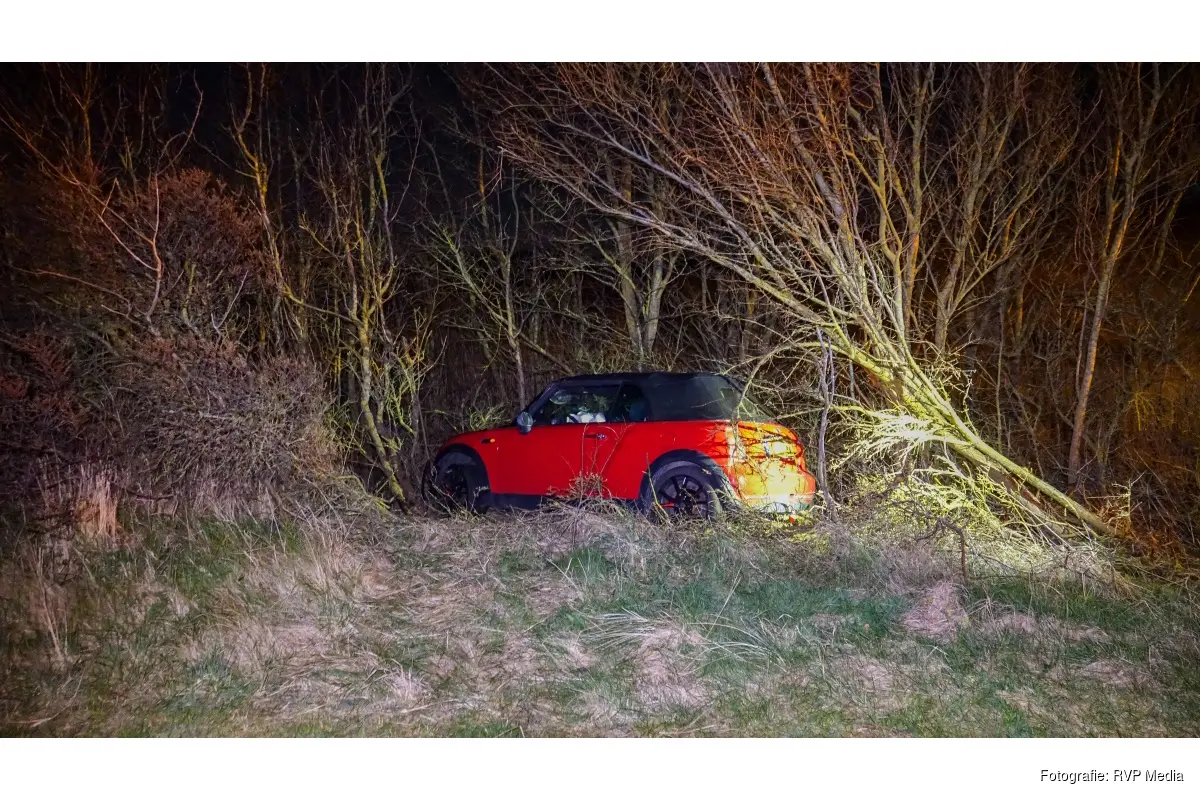 De man verklaarde zelf dat hij moest uitwijken voor een hert. De auto kwam vervolgens tussen de bomen langs de weg tot stilstand.