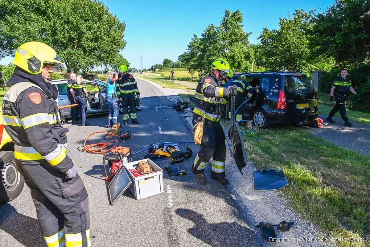 De brandweer heeft de zijkant van de auto open geknipt waarna de vrouw uit de auto gehaald kon worden. Zij is daarna per ambulance naar het ziekenhuis overgebracht. De andere bestuurder kwam met de schrik vrij.