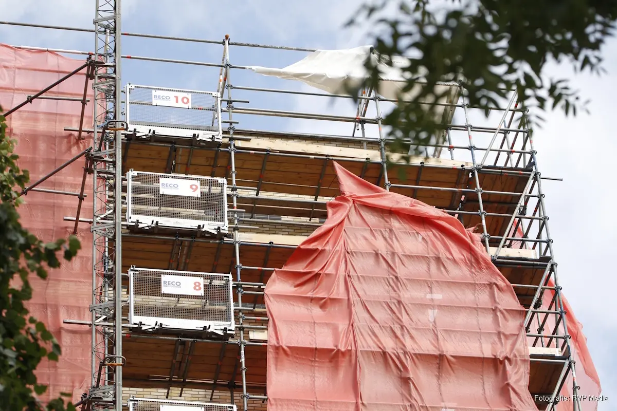 Bij aankomst van de brandweer bleek er een doek van een steiger los te zijn gekomen. Het doek beschermt normaal gesproken de medewerkers welke aan het werk zijn op de steiger.