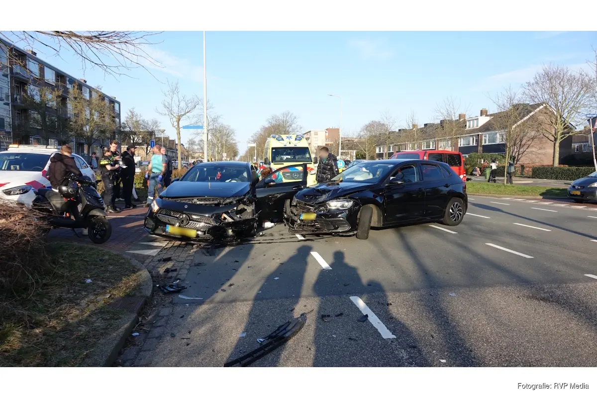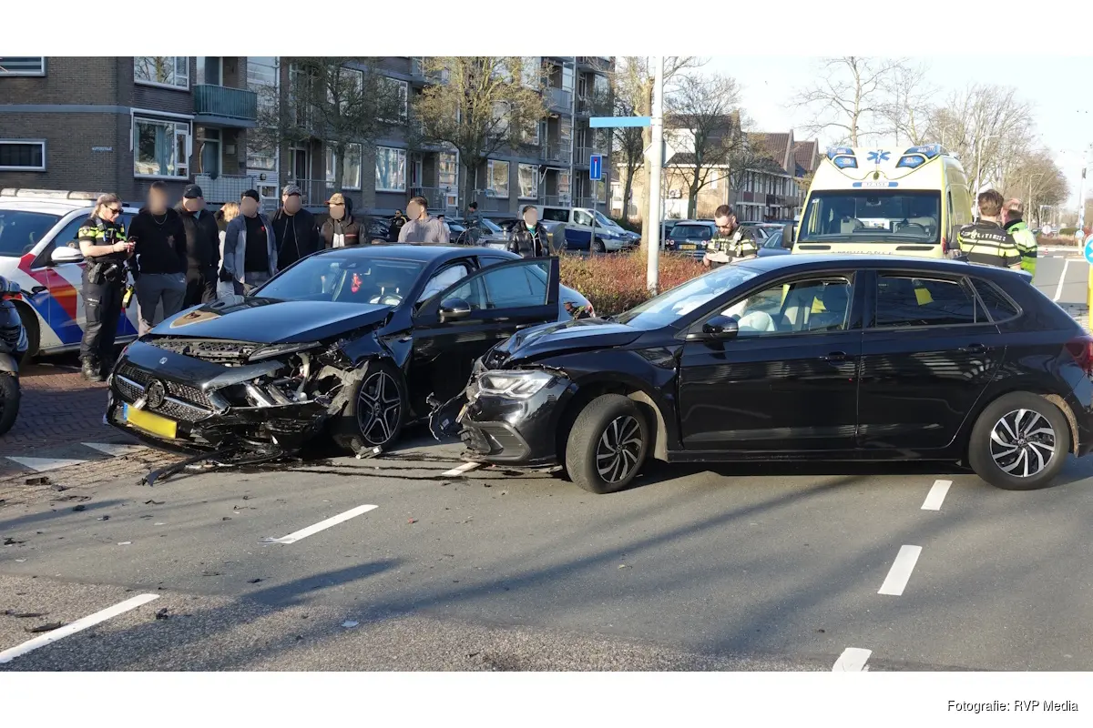 Een auto kwam vanaf het Europaplein en reed de Beneluxlaan op. Daarbij kwam het voertuig in botsing met een Mercedes.