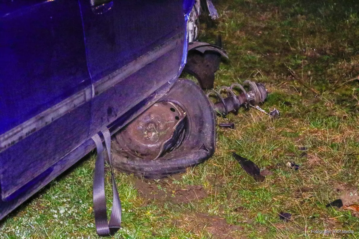 Niemand raakte gewond, wel is de schade fors. Bij één van de twee voertuigen is een wiel volledig afgebroken.