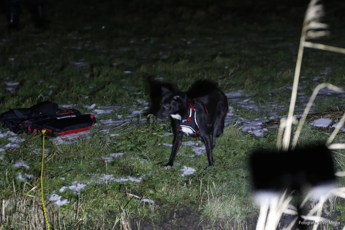 De hond zwom onverwachts een sloot over en belandde in een weiland aan de overkant. Het baasje kon het dier niet meer zelf terughalen en schakelde de hulpdiensten in. De brandweer kwam ter plaatse en ging via de sloot naar het weiland om de hond te benaderen. Door het dier rustig te lokken, slaagden de brandweerlieden erin de hond te pakken en veilig terug te brengen.