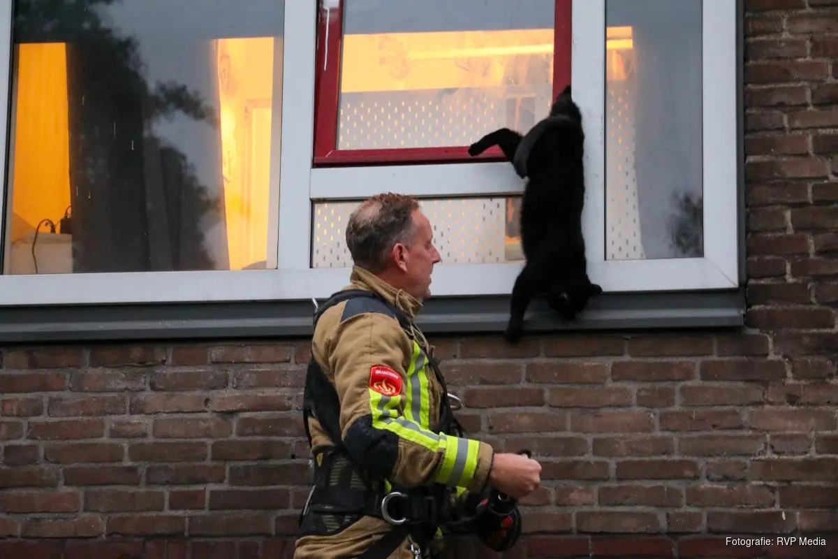 De brandweer kreeg uiteindelijk de kat los uit het raam, maar de kat raakte door de bekneling in het kiepraam wel gewond aan zijn pootje en zal door een dierenarts moeten worden nagekeken.