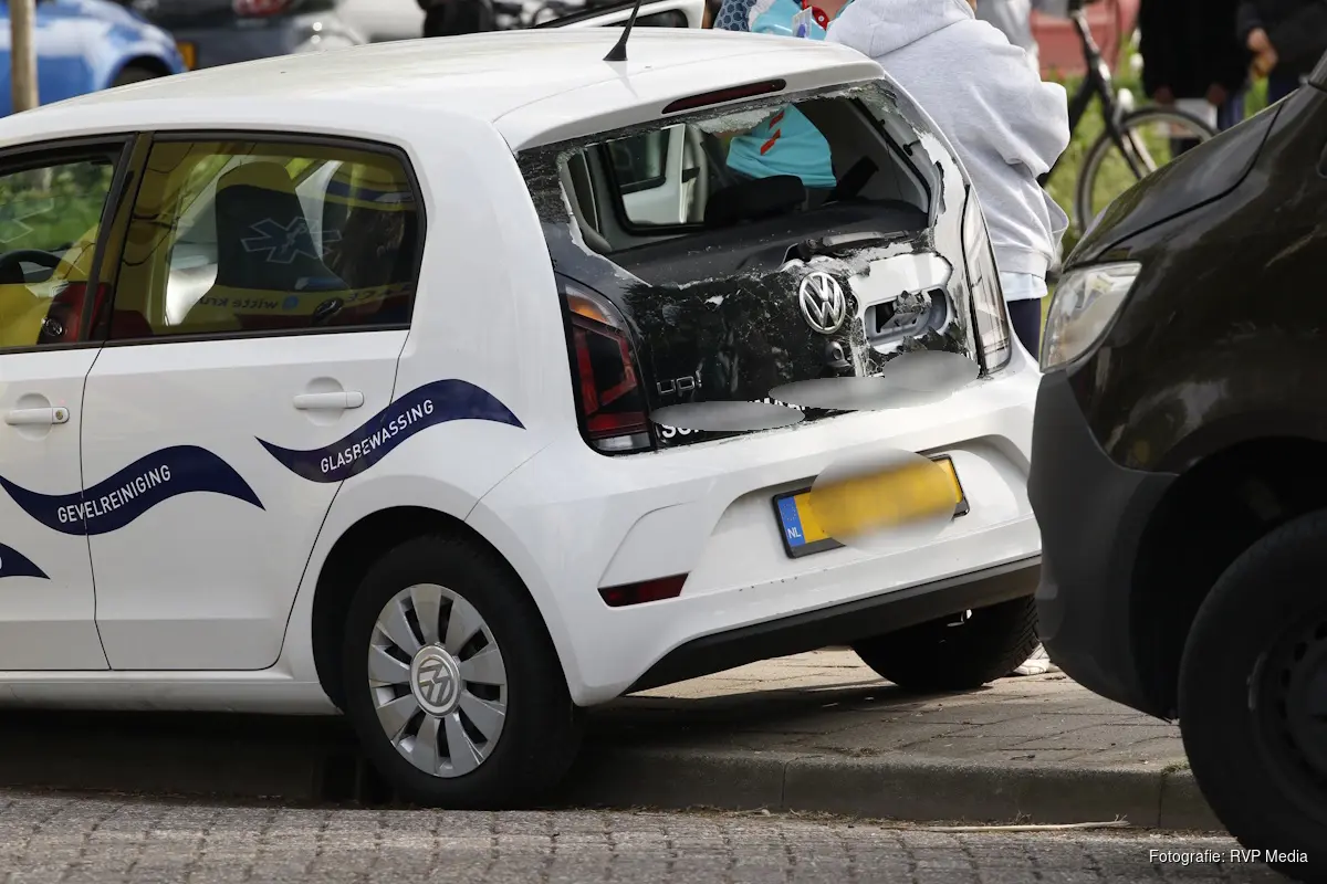 De bestelbus botste achterop de auto, waardoor met name schade ontstond aan de achterzijde van het voertuig.
