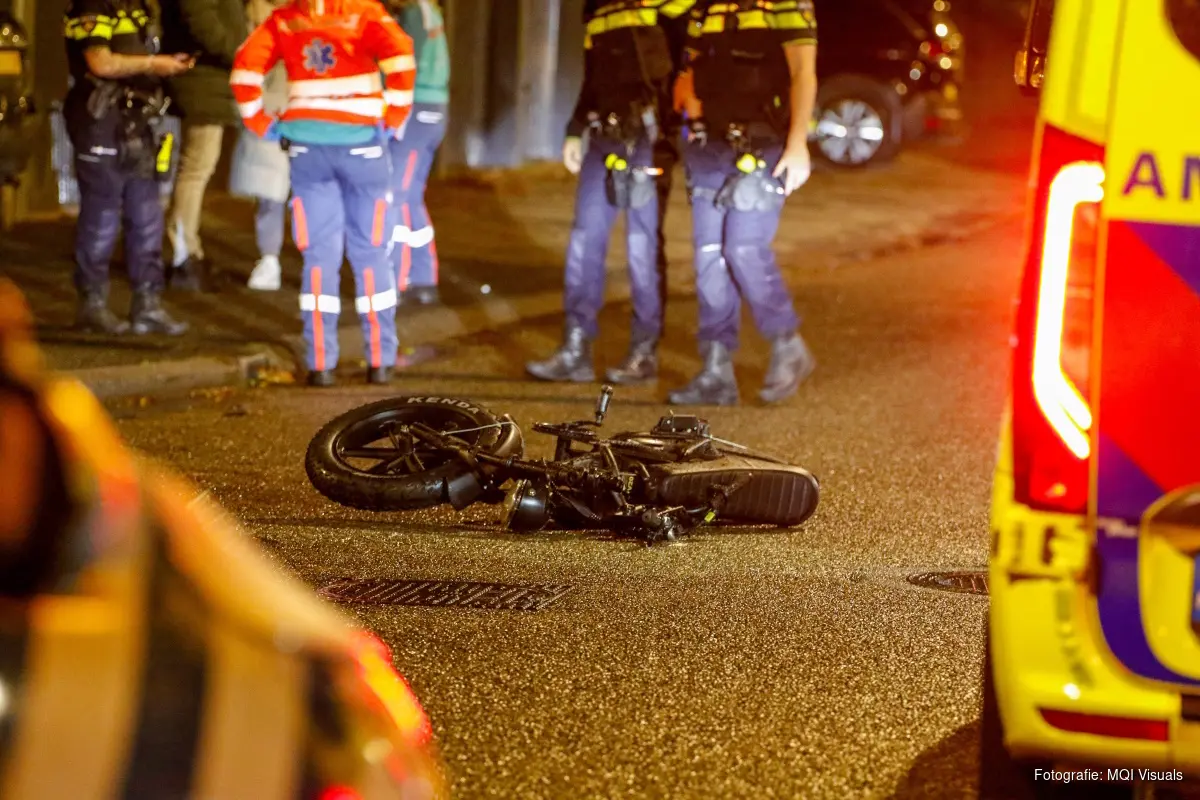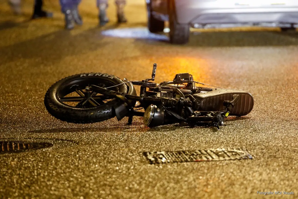 De maaltijdbezorger kwam op de kruising Ardensweg-Huiderlaan door nog onbekende oorzaak in aanrijding met een personenauto, waarna hij ten val kwam.