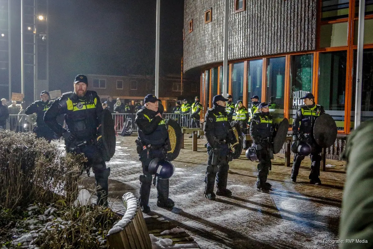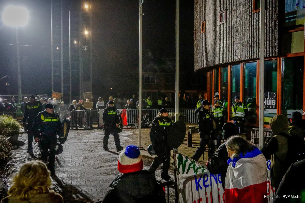 Momenteel staan er meerdere ME bussen paraat in het dorp en houdt de politie verscherpt toezicht rondom het gemeentehuis en station.