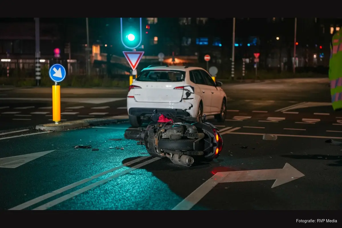 Een automobilist welke stond te wachten voor de stoplichten wilde net gaan optrekken toen een motorscooter achterop de auto botste. De motorrijder kwam daarbij ten val en was korte tijd buiten bewustzijn.