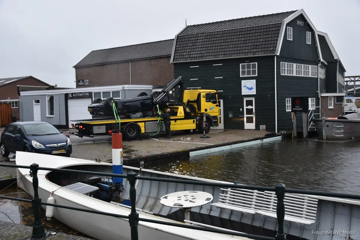 Een bergingsbedrijf heeft de personenauto doormiddel van een kraan uit het water getakeld en afgesleept.