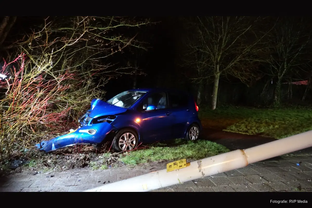 De politie kreeg op maandag 23 februari 2026 om 23:28 uur een melding van een ongeval. In de Mozartstraat in Heemskerk was een voertuig uit de bocht gevlogen. Agenten troffen het voertuig aan tegen een lantaarnpaal. Het voertuig had veel schade aan de voorzijde.