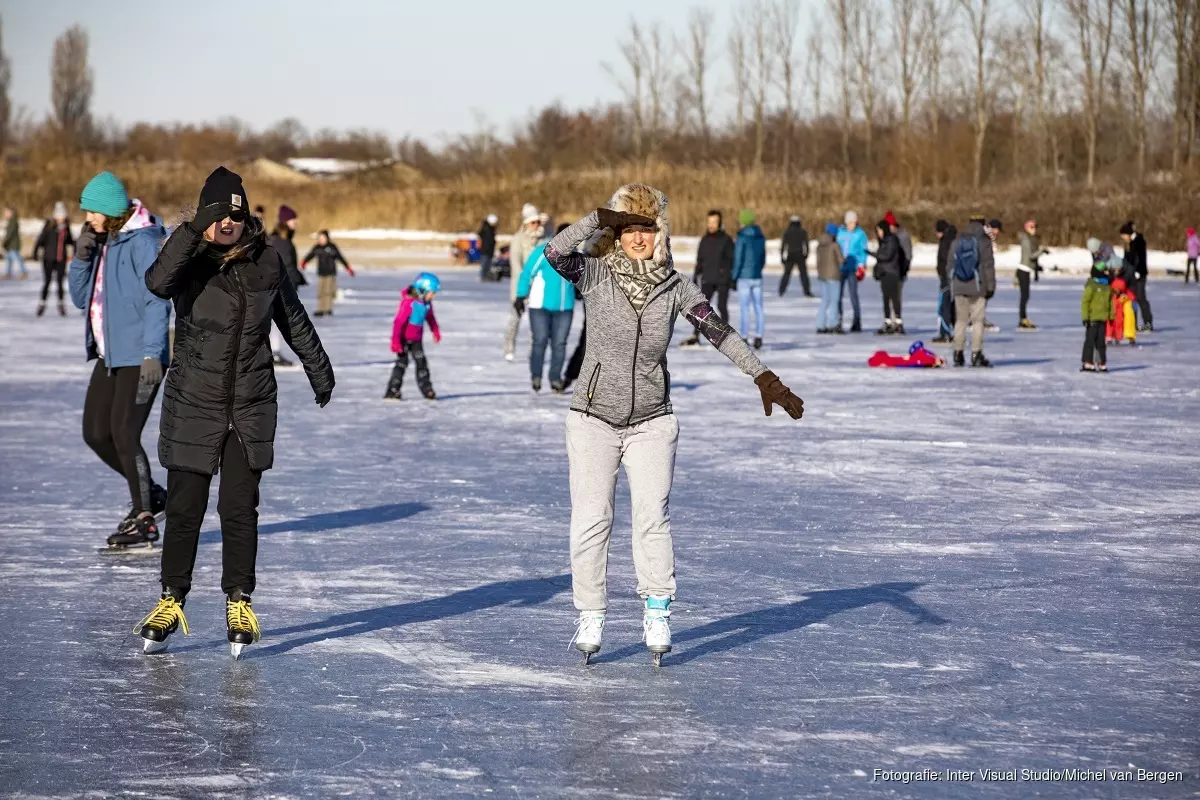 Op het ijs schaatsen ook twee agenten om toezicht te houden.