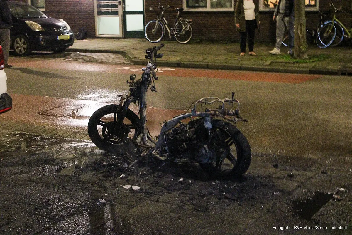 Bij aankomst bleek een scooter, die op de stoep voor de deur van een woning stond, in brand te zijn gevlogen. De scooter kan door de brand als verloren worden beschouwd.