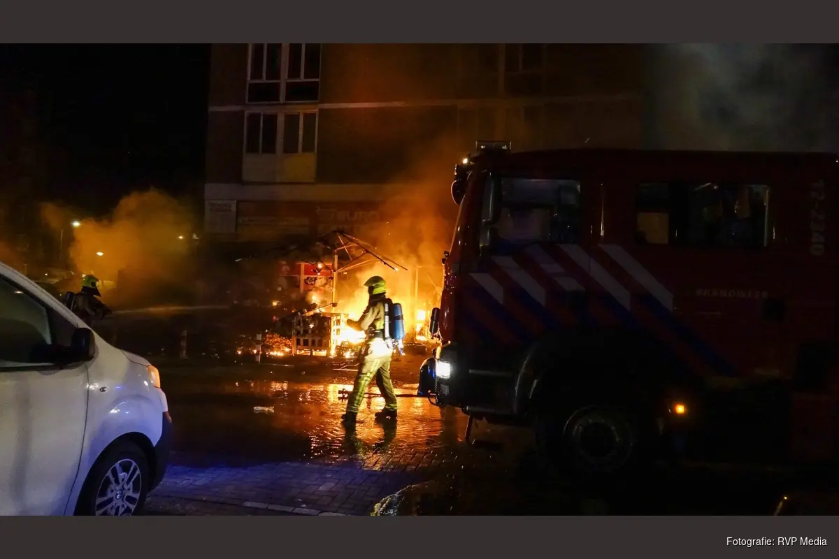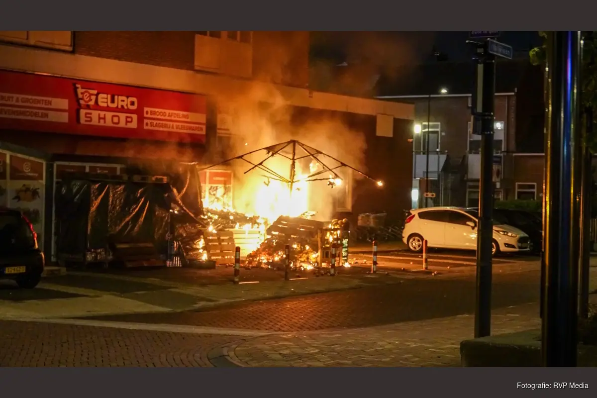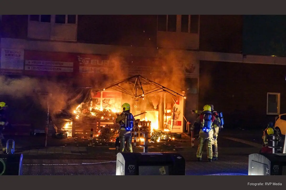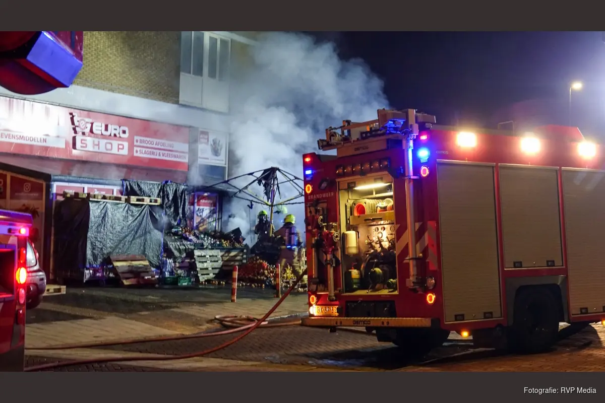 De straat was vanwege de brand volledig afgesloten. De winkel is door de brand beschadigd geraakt