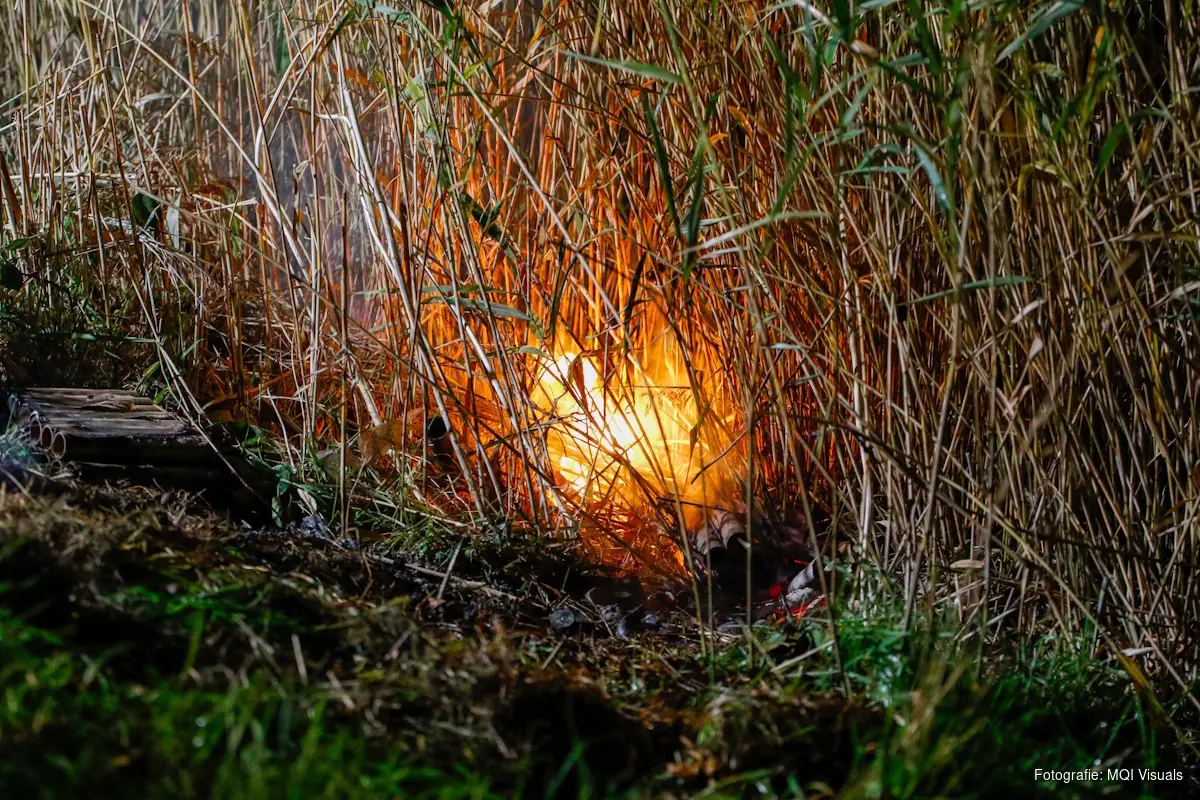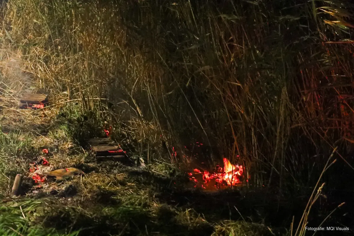 De brandweer werd rond 19:40 uur gealarmeerd voor een buitenbrand, langs het water -in het riet- lag een brandende vuurwerkpot.