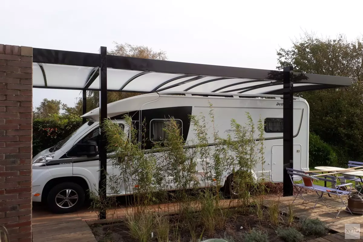 Een overkapping voor een camper is een aanrader alleen al om het genot van het schoonmaken in het voorjaar. Dit is een met een Carport van Harderwijk een eitje geworden.