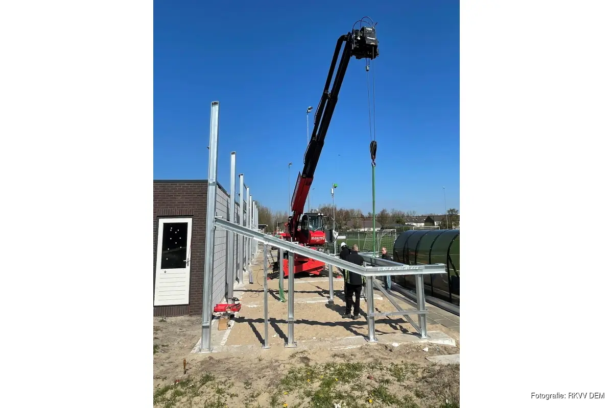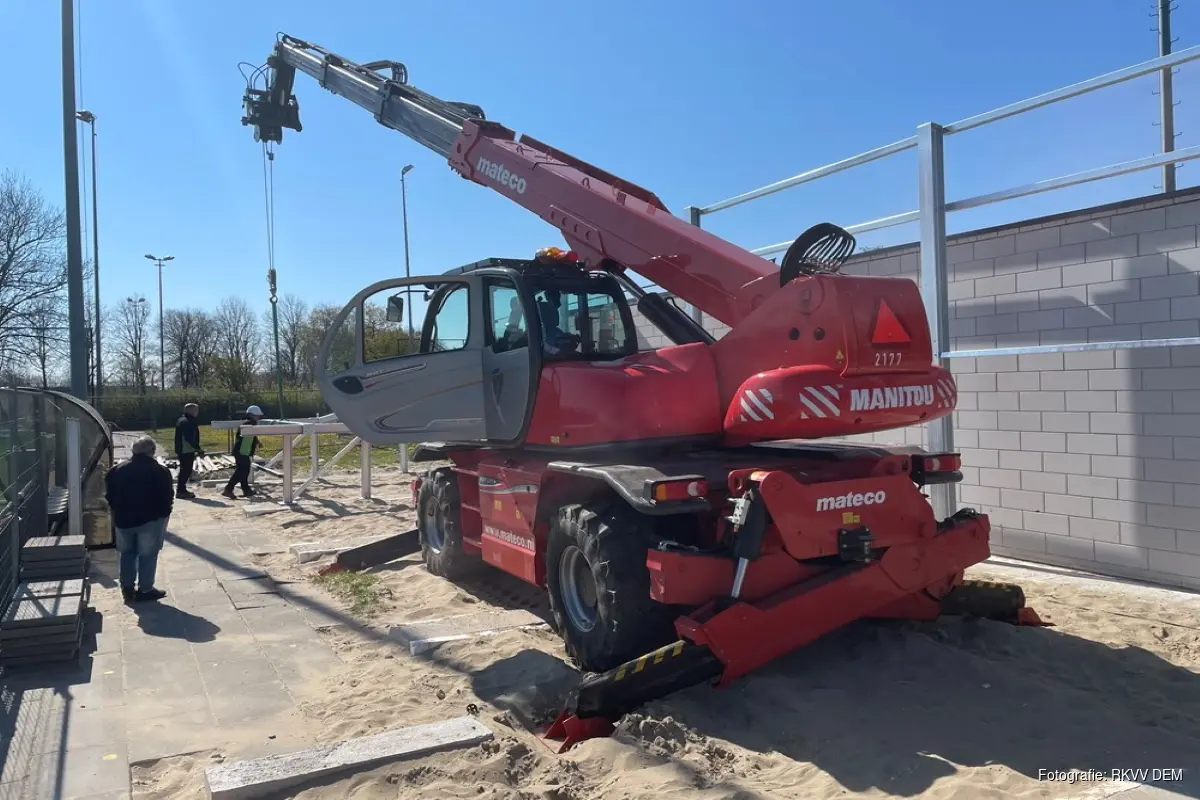Voor de buitenzijde is begonnen aan een nieuwe fase en een minstens zo belangrijke mijlpaal: de nieuwe tribune. Waar de werkzaamheden voor de kleedkamers veelal in eigen beheer en door veel vrijwilligers kunnen worden uitgevoerd, wordt de tribune als een kant en klaar bouwpakket geleverd en gemonteerd door ER sportprojecten. Binnen circa 3 weken moet ook de tribune gereed zijn. Bijna klaar voor de start van het nieuwe voetbalseizoen!