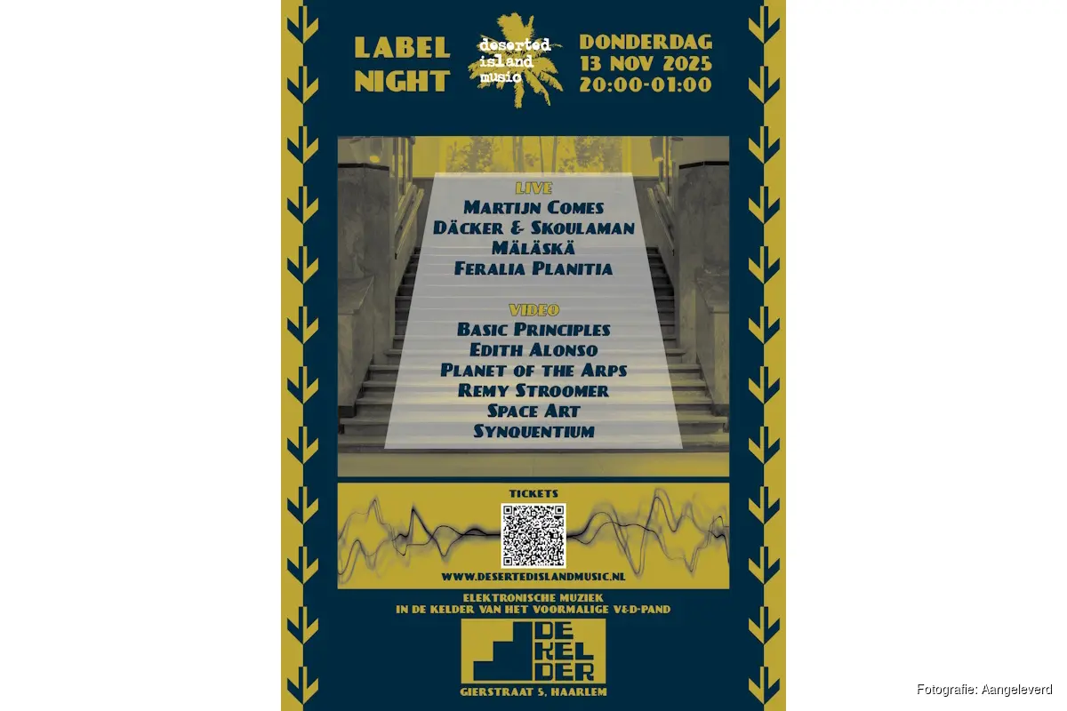 HAARLEM - Labelavond Deserted Island Music op donderdagavond 13 november, met liveconcerten van Martijn Comes, Däcker & Skoulaman, Mäläskä en Feralia Planitia.