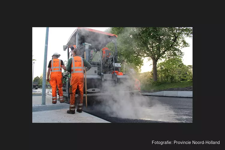 De gebiedsaannemer BAM/Krinkels/Equans vernieuwt het asfalt in opdracht van de provincie Noord-Holland. De werkzaamheden worden in de avond en nacht uitgevoerd om de hinder voor het verkeer zo veel mogelijk te beperken.