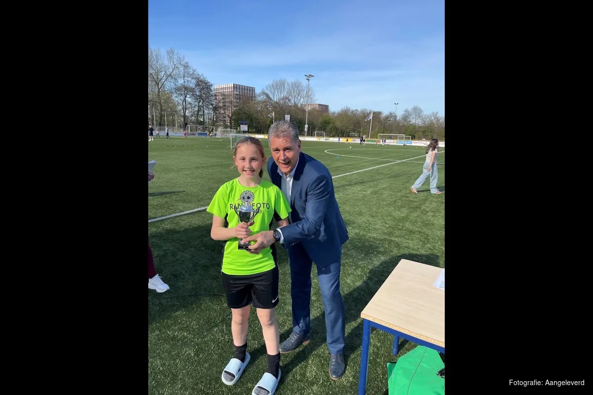 De prijsuitreiking is gedaan door Wethouder Aad Schoorl, die naast de kampioensbekers ook de penaltybokaal aan Abdul Hannan van de Vlinder en Sofie Voorbij van de Otterkolken uitreikte. De Fair Play bokaal ging dit jaar naar het jongens 3 team en het meisjes 2 team van de Anne Frank. Goed gedaan!