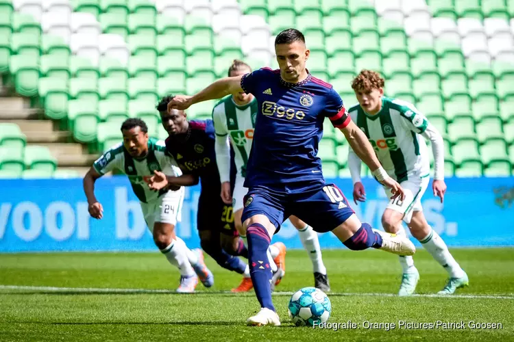 GRONINGEN - Ajax heeft de derde plaats heroverd op AZ. De ploeg van trainer John Heitinga wist FC Groningen in een lege Euroborg na de pauze opzij te zetten: 2-3.
