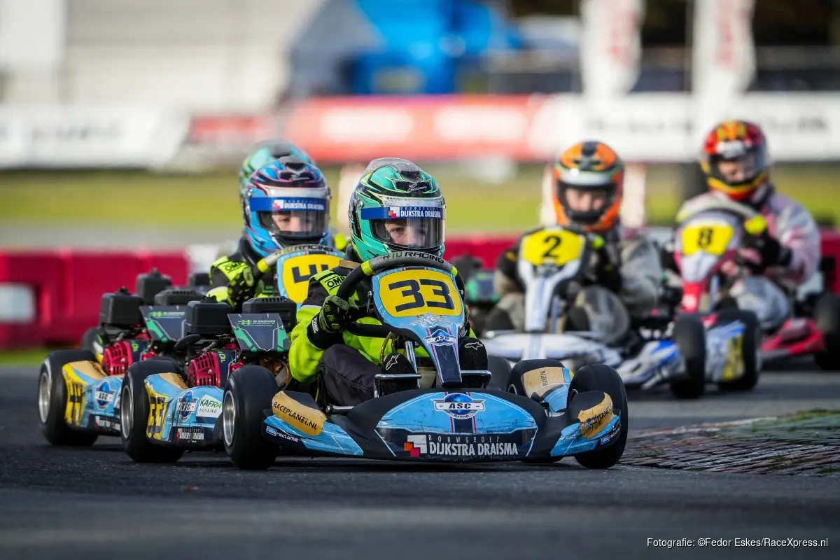 BERGHEM – Van de zesde naar de derde plaats in de slotrace, én de dagzege. Oliver Bleekemolen maakte het zondag spannend op het circuit van Berghem tijdens de zesde en laatste ronde van het Nederlands kampioenschap viertakt. De twaalfjarige kartcoureur uit Aerdenhout won het dagklassement in de Parolin Rocky Mini F1-klasse met slechts één punt verschil. Zijn tweelingbroer Benjamin sloot de dag sterk af met de vierde plaats in de finale en de snelste rondetijd van het weekeinde.