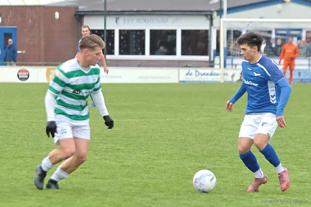 In de eerste helft bleken beide ploegen aan elkaar gewaagd en was de 0-0 tussenstand bij rust dan ook een terechte. Na de pauze liet Stormvogels er echter geen gras over groeien wat de intenties waren. De gasten uit Amstelveen werden steeds meer op de eigen helft gedrukt en dat leverde uiteindelijk een duidelijke en terechte zege op middels twee treffers van Jan Koridon en een doelpunt van Dustin Mijnders die in de slotfase overigens nog wel tegen zijn tweede gele kaart opliep.