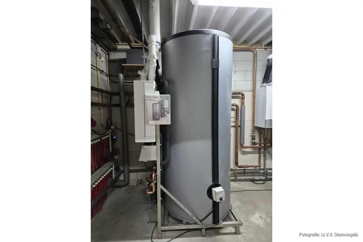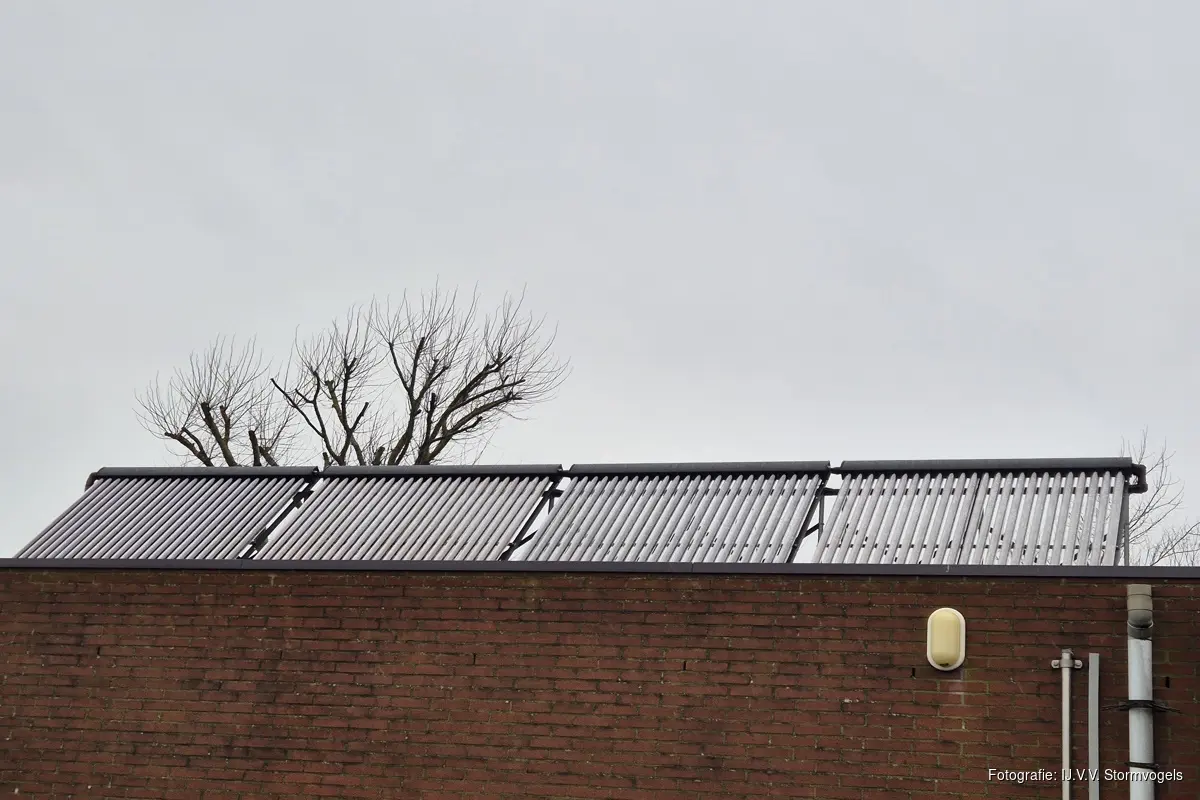 Nadat vorig jaar 96 zonnepanelen zijn aangelegd en alle kozijnen en ramen zijn vervangen (isolatie) om de steeds stijgende energiekosten beter op te vangen en te beperken is er nu een vervolg gegeven aan de verduurzaming. De gas gestookte warmwatervoorziening voor de kleedkamers is vervangen door een zogenaamde reheatinstallatie. Een flinke investering die zich zelf ook weer moet gaan terug verdienen. Zonnecollectoren op het dak zorgen, via een geleiding naar het boilervat, voor opwarming van het water zodat er, na afloop van wedstrijden en/of training prettig gedoucht kan worden. Een volgende stap is, vermits de benodigde elektrische capaciteit dit toestaat, de aanschaf van een hybride warmtepomp ter vervanging van de bestaande CV installatie. Je ziet dat men bij Stormvogels goed bezig is met het investeren in de toekomst.