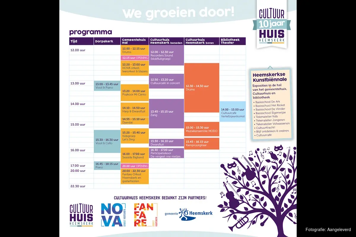 Tien jaar Cultuurhuis betekent tien jaar groei, dit is dan ook het thema van het festival. Wat begon als een nieuwe start, is uitgegroeid tot een plek waar inwoners van alle leeftijden zich creatief ontwikkelen. Tijdens het festival wordt dat zichtbaar en hoorbaar gemaakt. “Deze dag laat precies zien waar we voor staan,” zegt directeur Mirjam du Cloo. “Iedereen doet mee: van jonge leerlingen tot ervaren muzikanten, van scholen tot verenigingen en deelnemers uit onze participatieprojecten.”