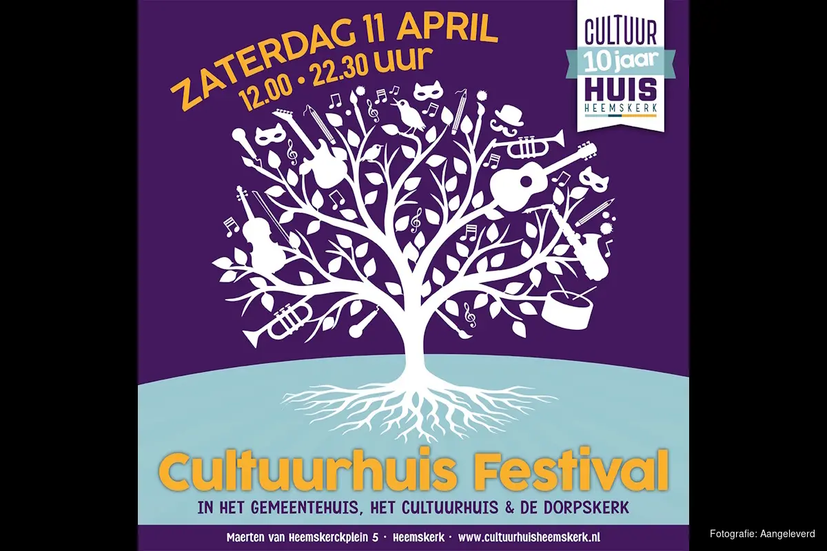 HEEMSKERK – Op zaterdag 11 april viert Cultuurhuis Heemskerk feest. Aankomende zomer bestaat het cultuurhuis namelijk alweer tien jaar! De hele dag zijn er optredens van leerlingen op drie locaties: in het Cultuurhuis, het gemeentehuis en de Dorpskerk. Er is een Heemskerkse Kunstbiënnale met kunstwerken van cursisten en Heemskerkse basisscholen. 's Avonds sluit Fanfareorkest Heemskerk de dag feestelijk af, met gastoptredens van Cultuurhuisleerlingen en -docenten.