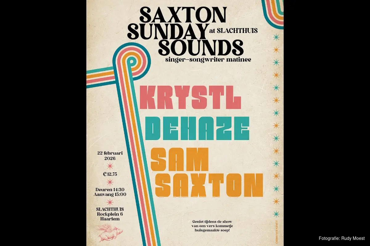 HAARLEM - Op zondag 22 februari staat het Slachthuis in het teken van een nieuwe editie van Saxton Sunday Sounds. Hoofdgast is Krystl, met in het voorprogramma het jonge talent DEHAZE. Een intieme zondagmiddag waarin muziek en verhaal centraal staan.